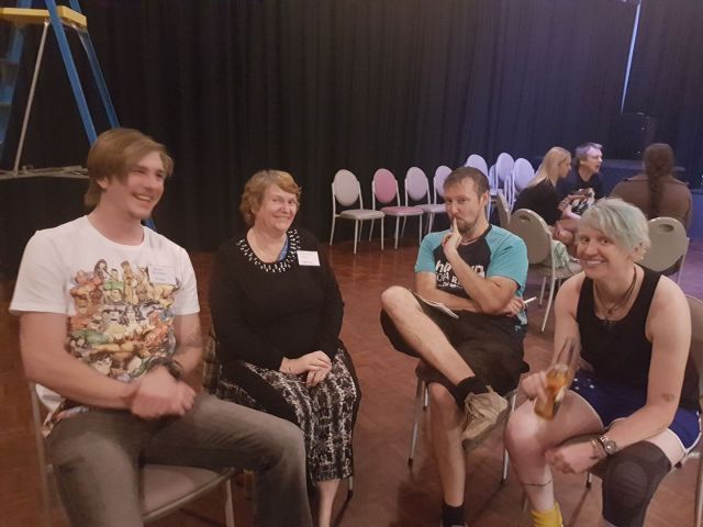 Actors roll up, I explain my motives and aims, then sit in for a read-thru. Yay, they’re laughing at what I hoped they would and get the film noir slow burn style. And the added-at-the-last-minute line is a winner, and is pretty close to my favourite.