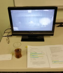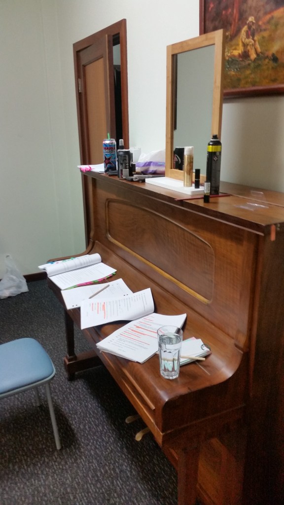 Christine the director arrives and secures one of the better rehearsal rooms. USB given for scripts to be printed. Page 3, and I’ve neglected a lighting cue. Rush to get the cue reinstated before multiple copies made.