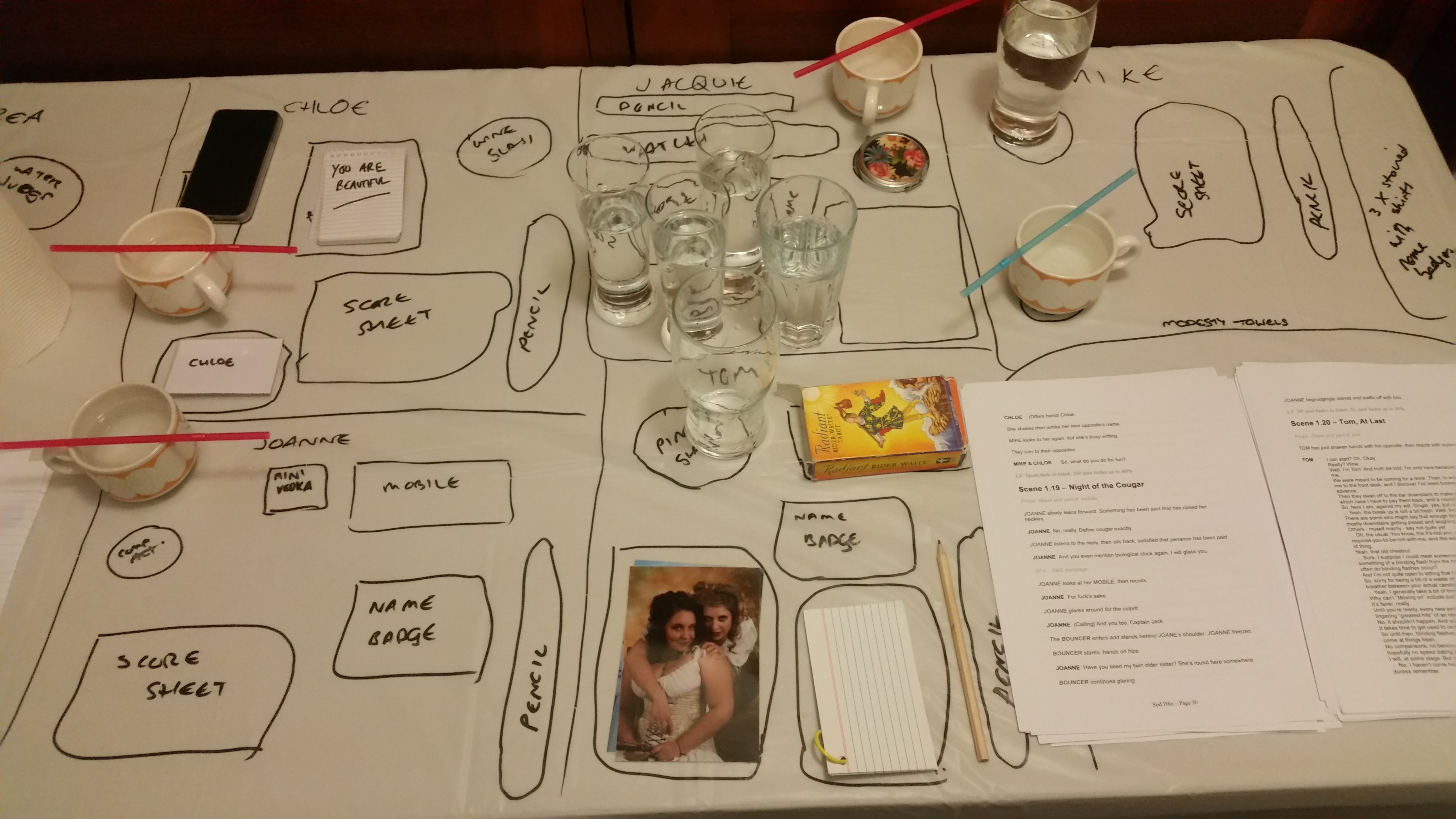 Designated meet time with the cast and director to knock ideas about. Frankly, the topic left me a little blank, but funnily enough, a few randomly associated items and topics were enough to pop something vaguely feasible in mind.