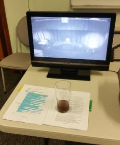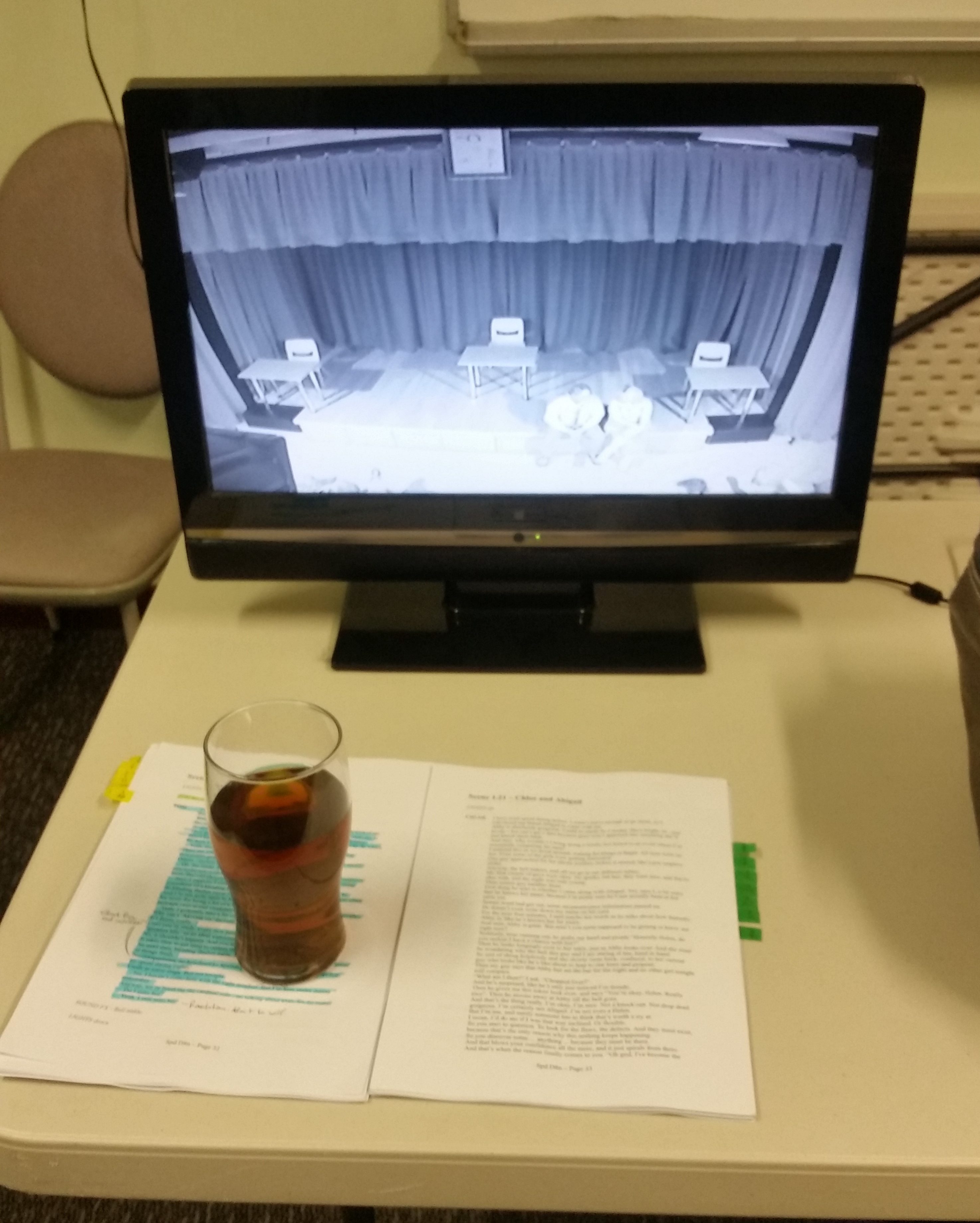 Chat with the tech team about what’s available and the effects that might be used. Sepia wash for a flashback? Perfect! Director comes up with an interesting set addition to play with perspective. Nice.